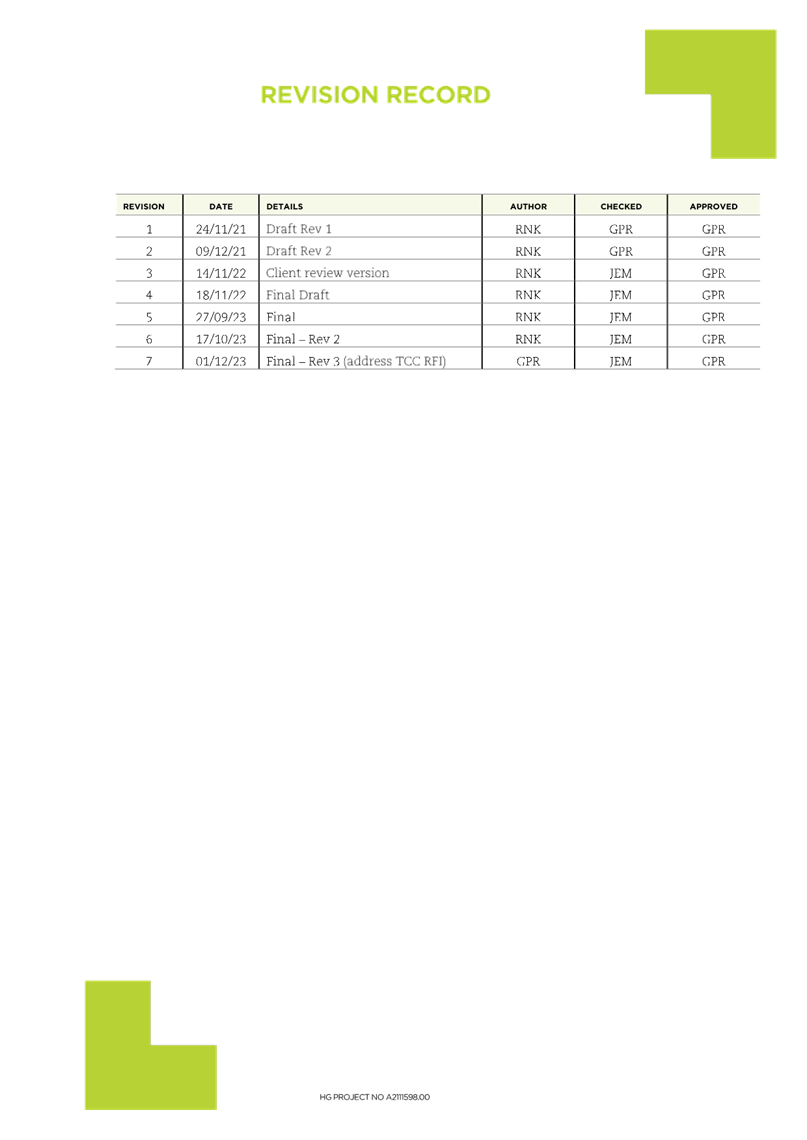 Attachment 2 S92 Request for Further Information Table...................... 91