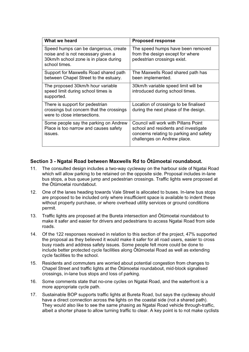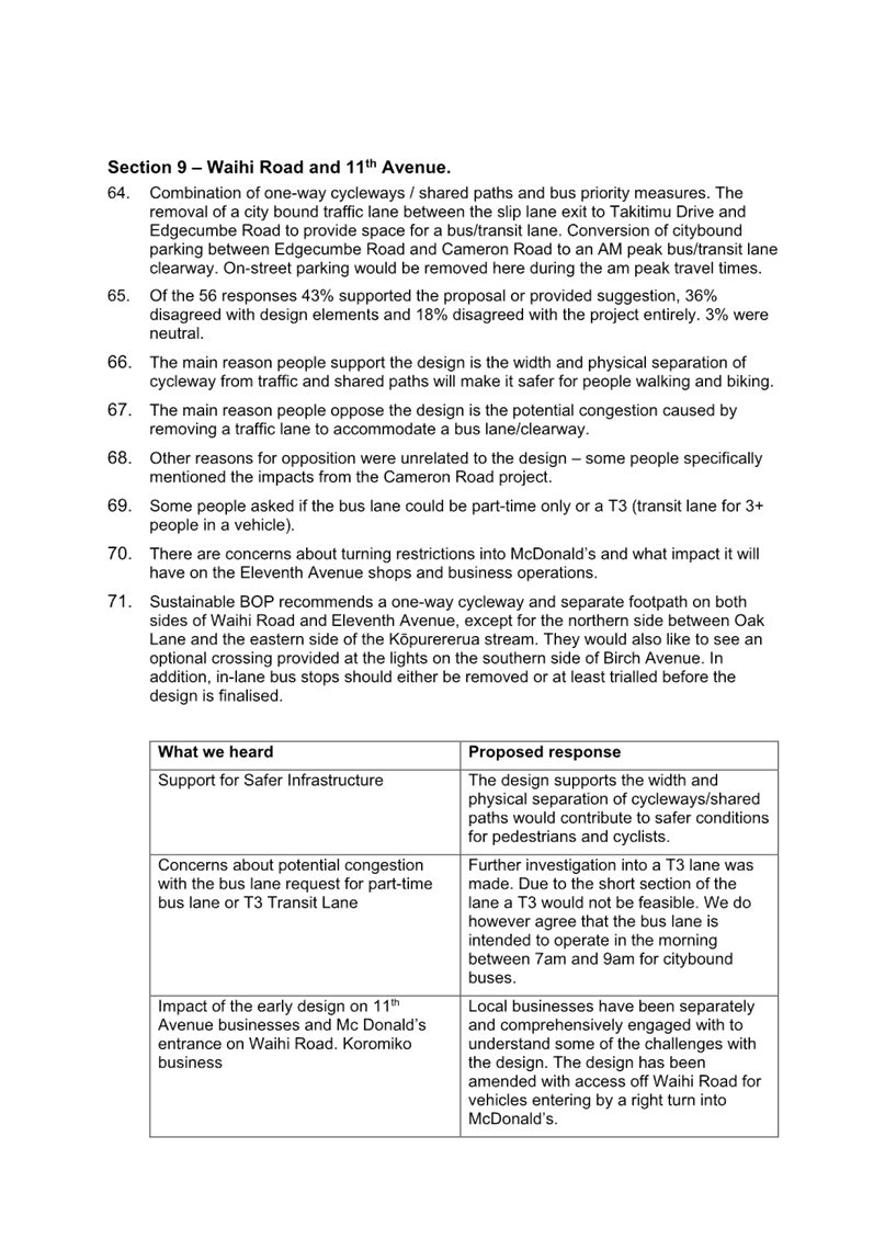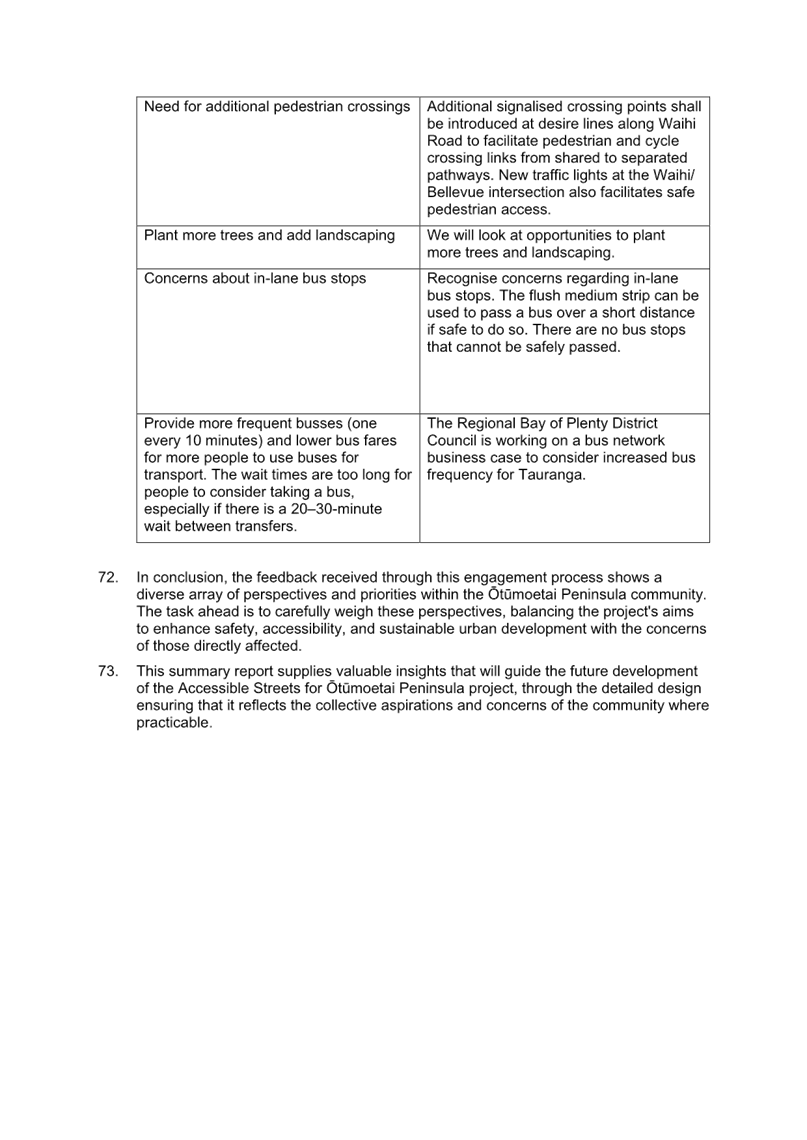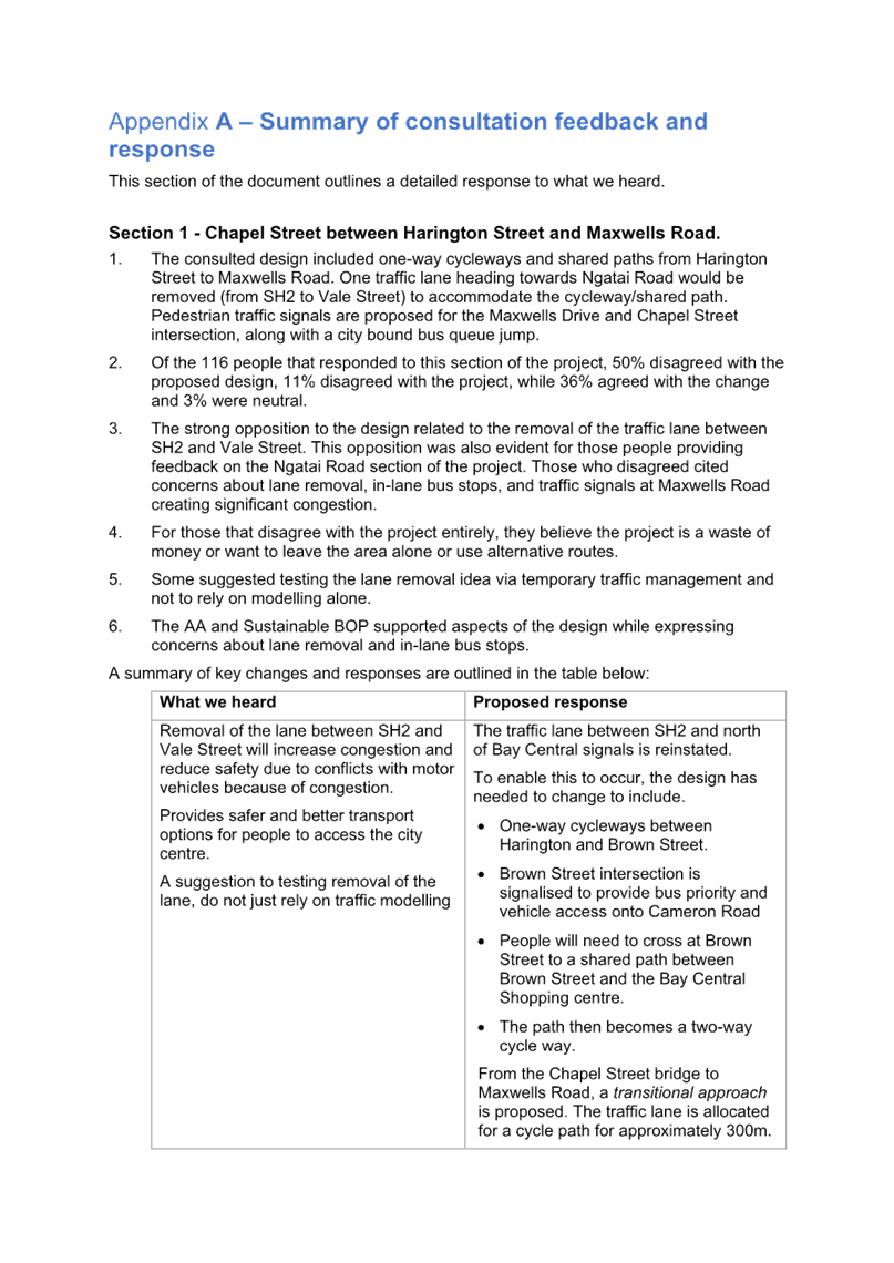 Attachment 1 Attachment A - Accessible Streets for Otumoetai summary of consultation feedback and response........................ 1665