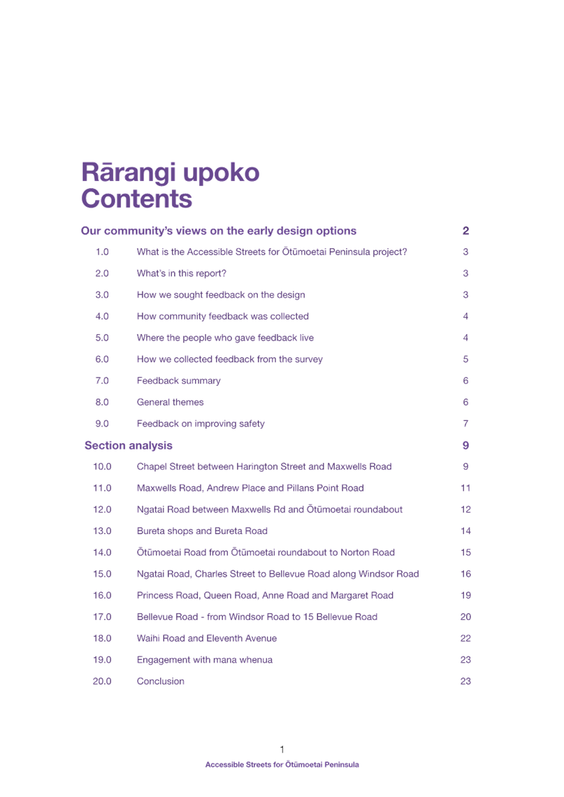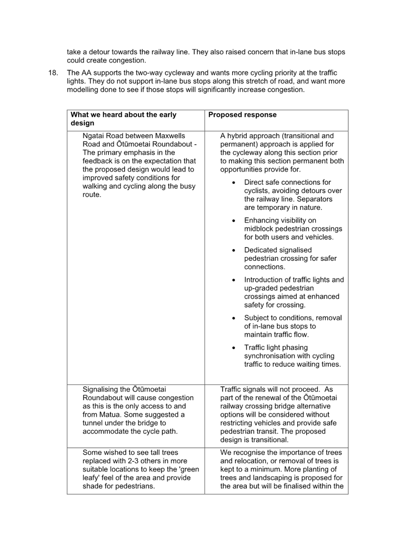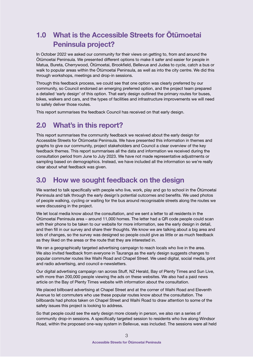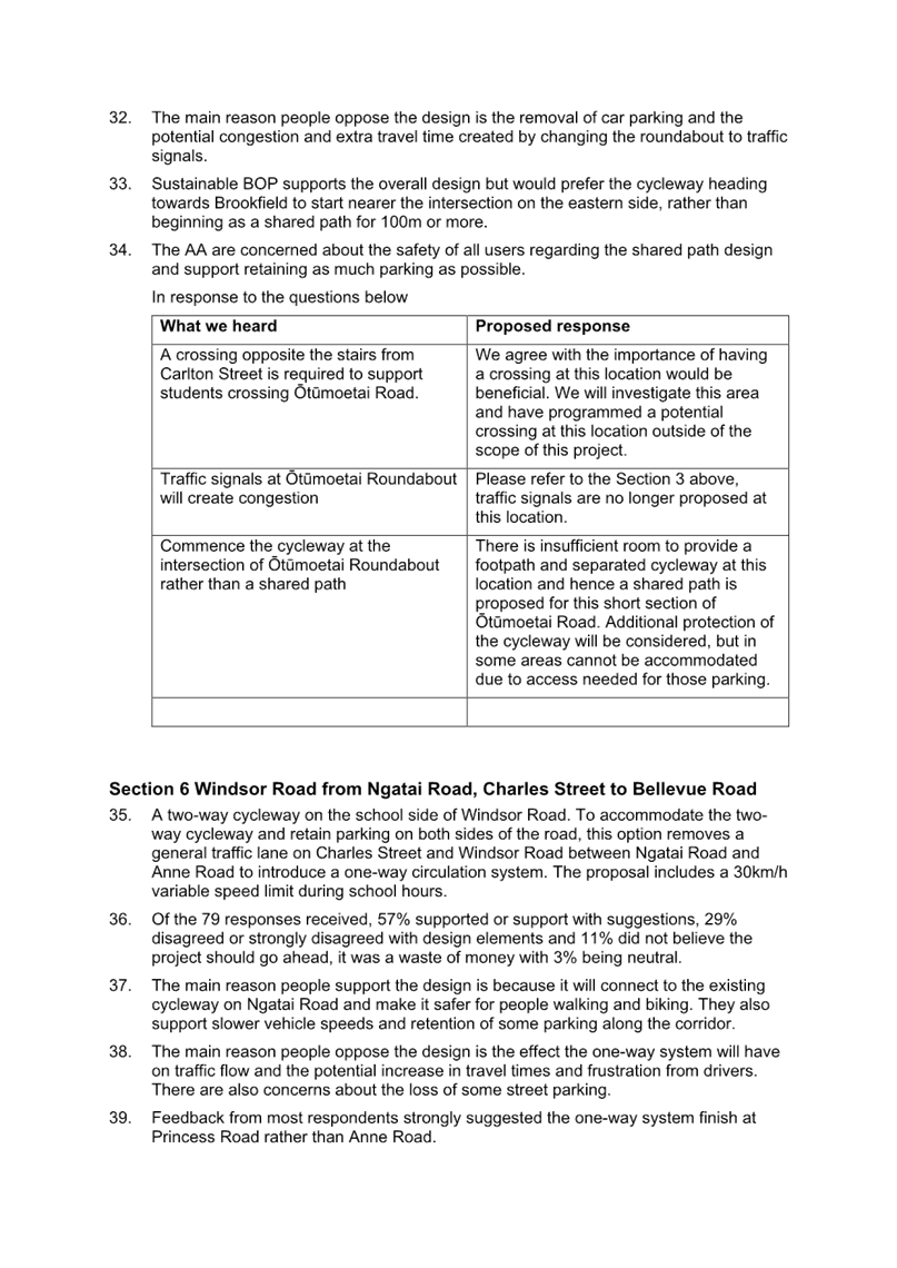 Attachment 1 Attachment A - Accessible Streets for Otumoetai summary of consultation feedback and response........................ 1665