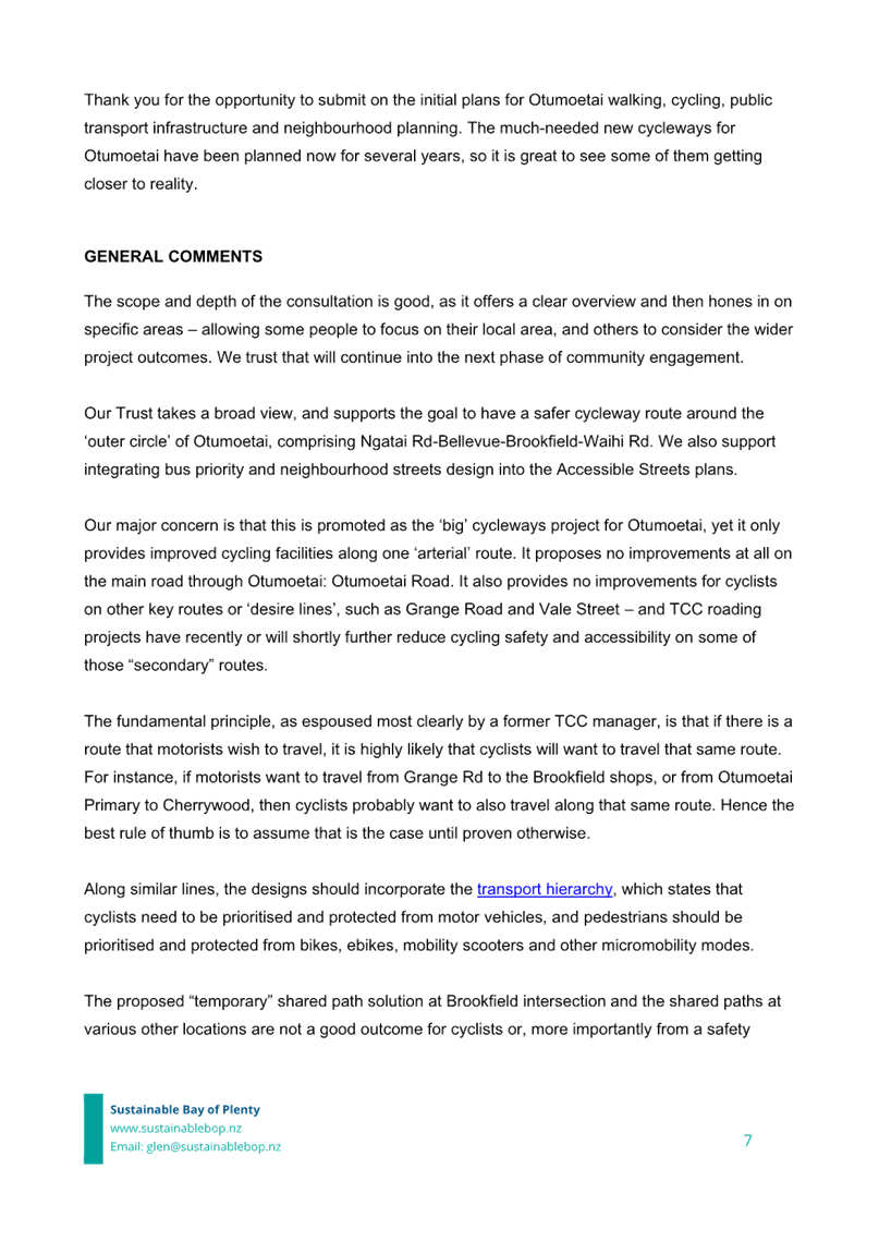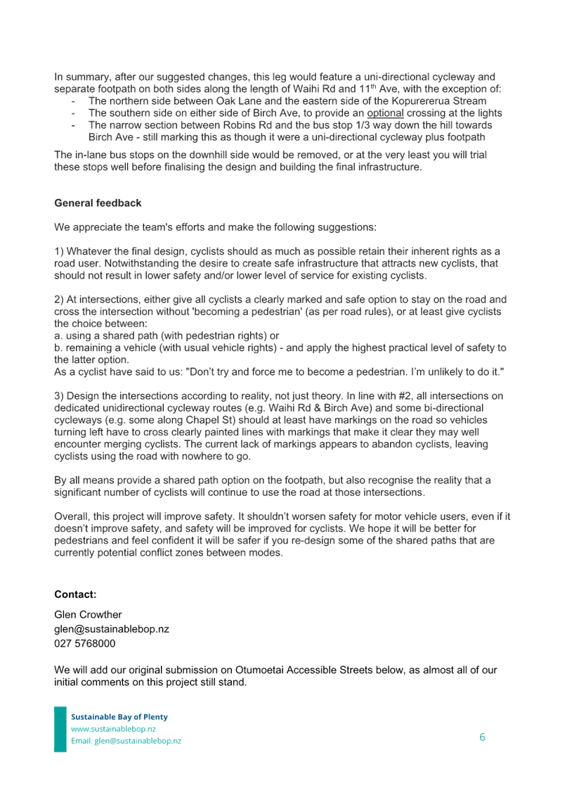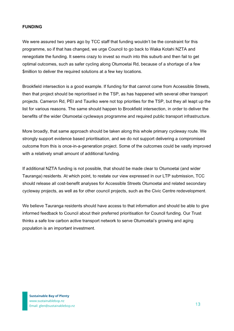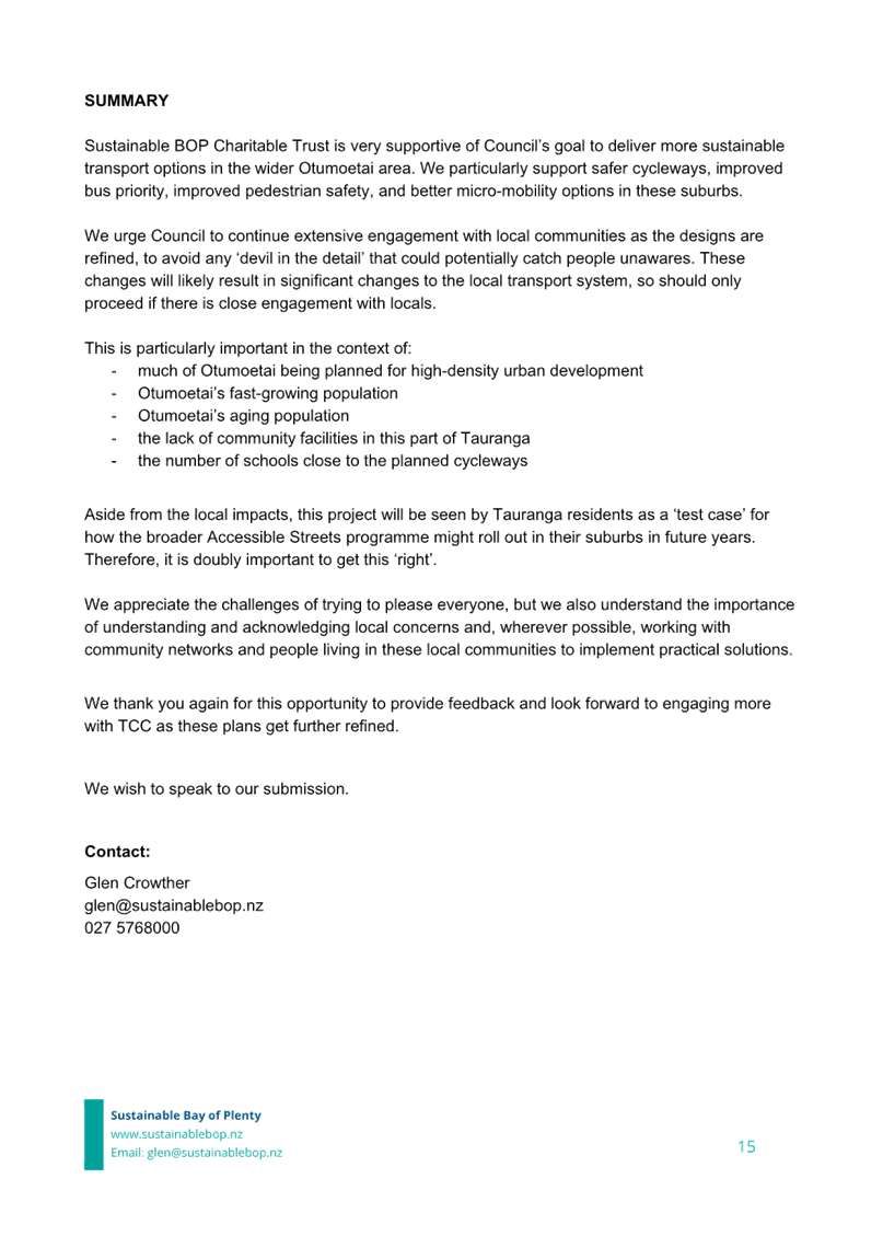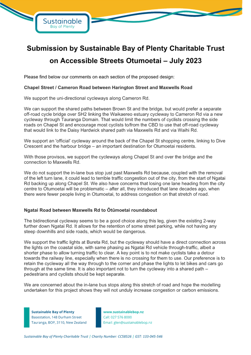 Attachment 12 Attachment L Sustainable BOP Submission on Accesssible Streets Otumoetai 2023-07........................................... 1913