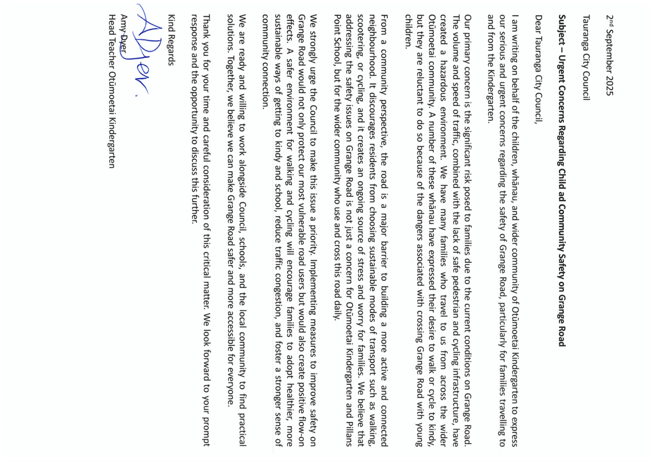3.3 Jacqui-Ellen Price - Principal, Pillars Point School - Student Safety on Grange Road.