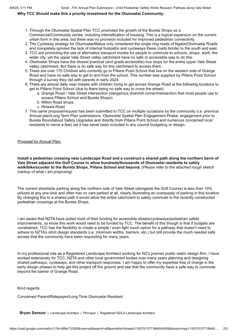 3.6 Bryan Sanson - Safety Concerns on Grange Road