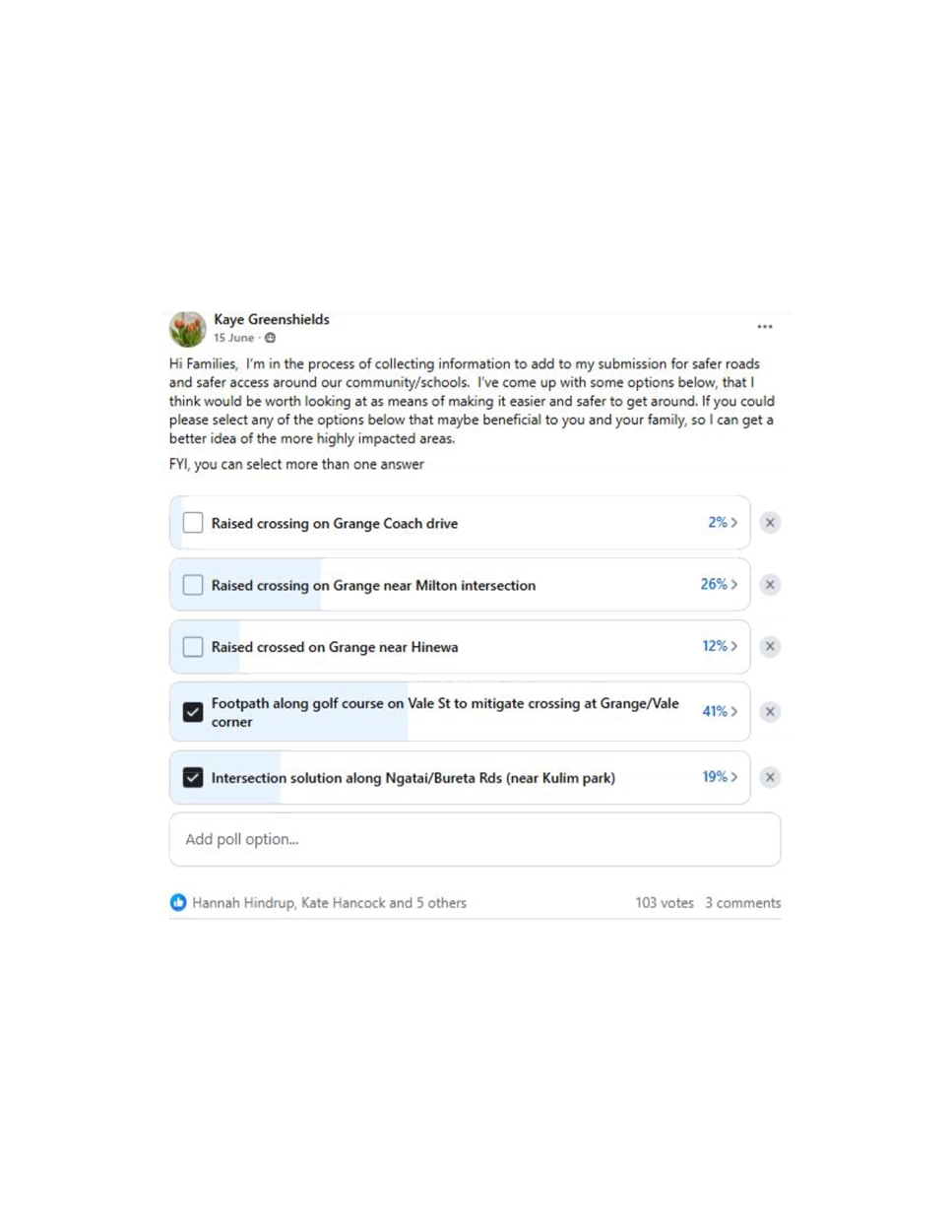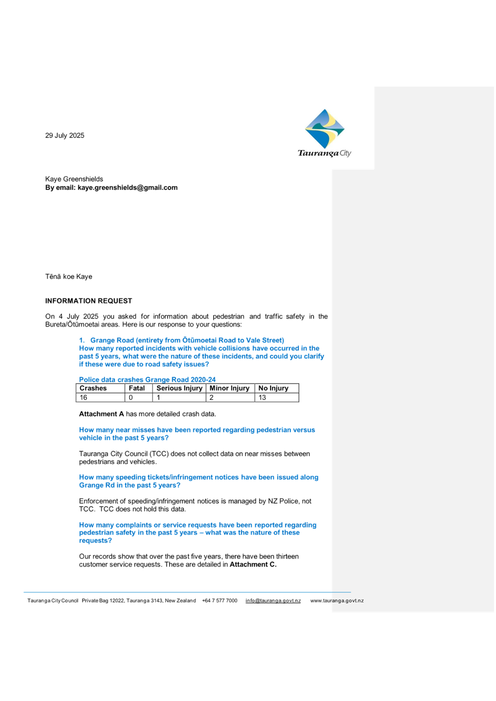 3.5 Kaye Greenshields - Safety Concerns on Grange Road