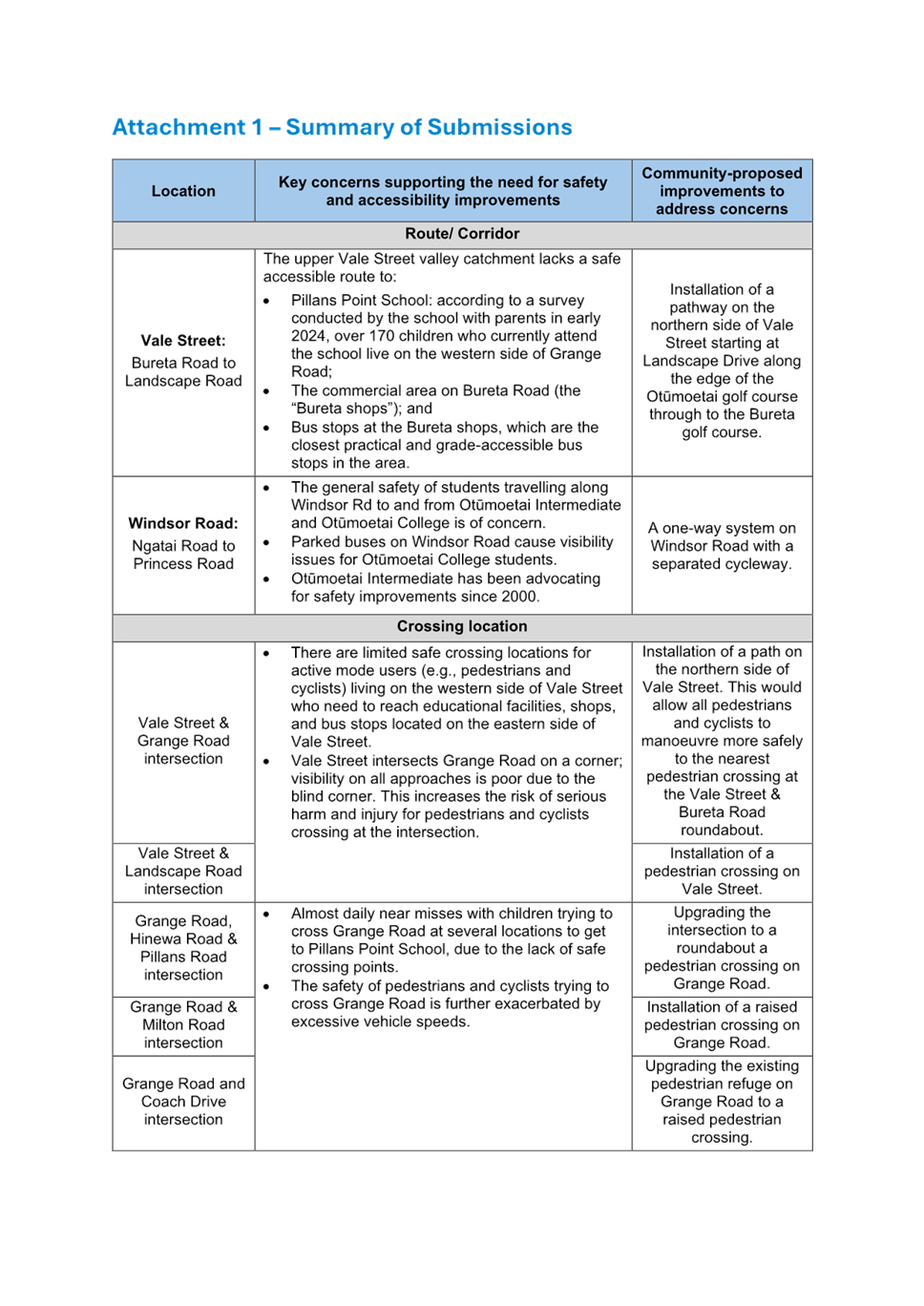 9.1 Vale Street, Windsor Road and Grange Road Safety Improvement Options