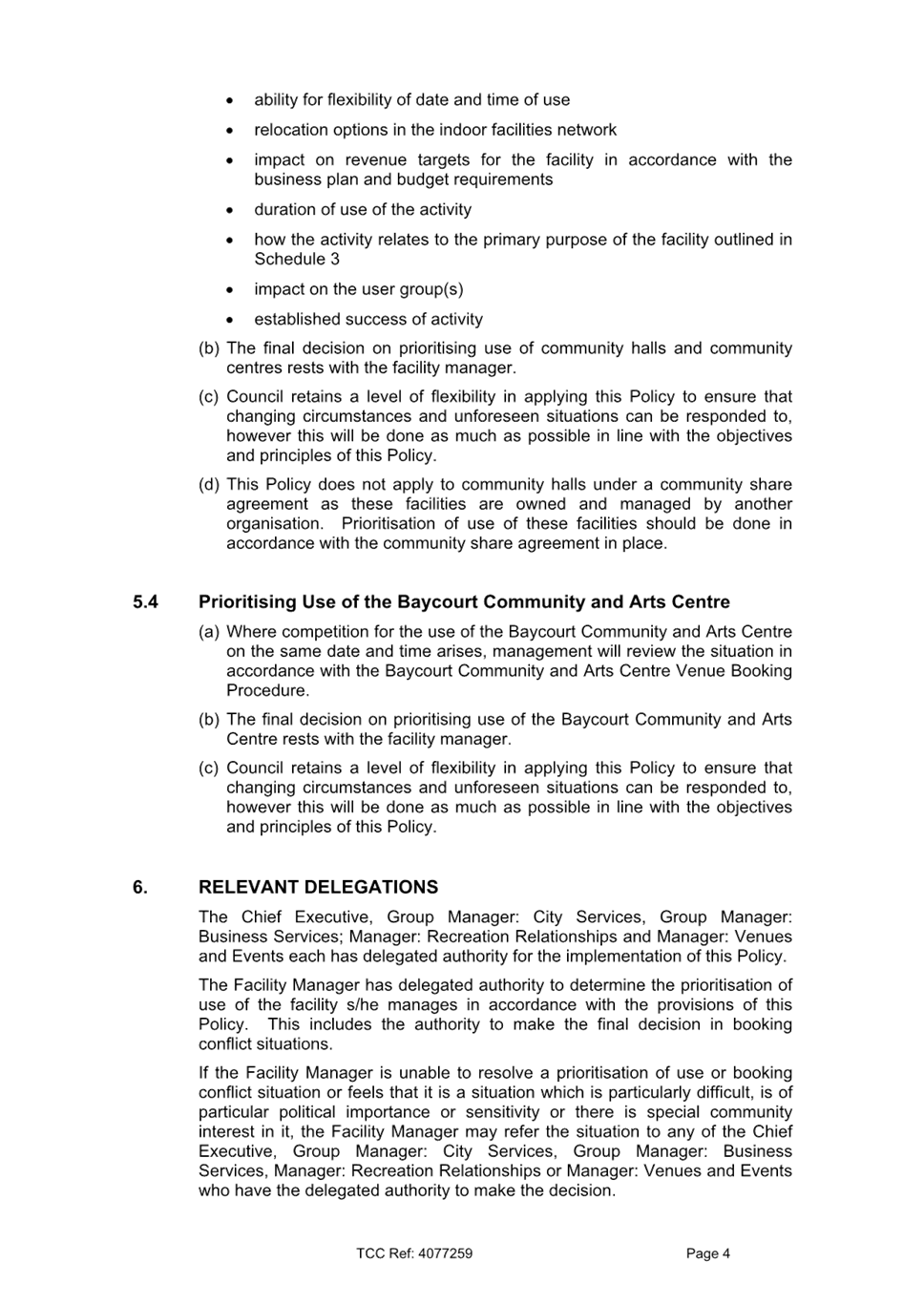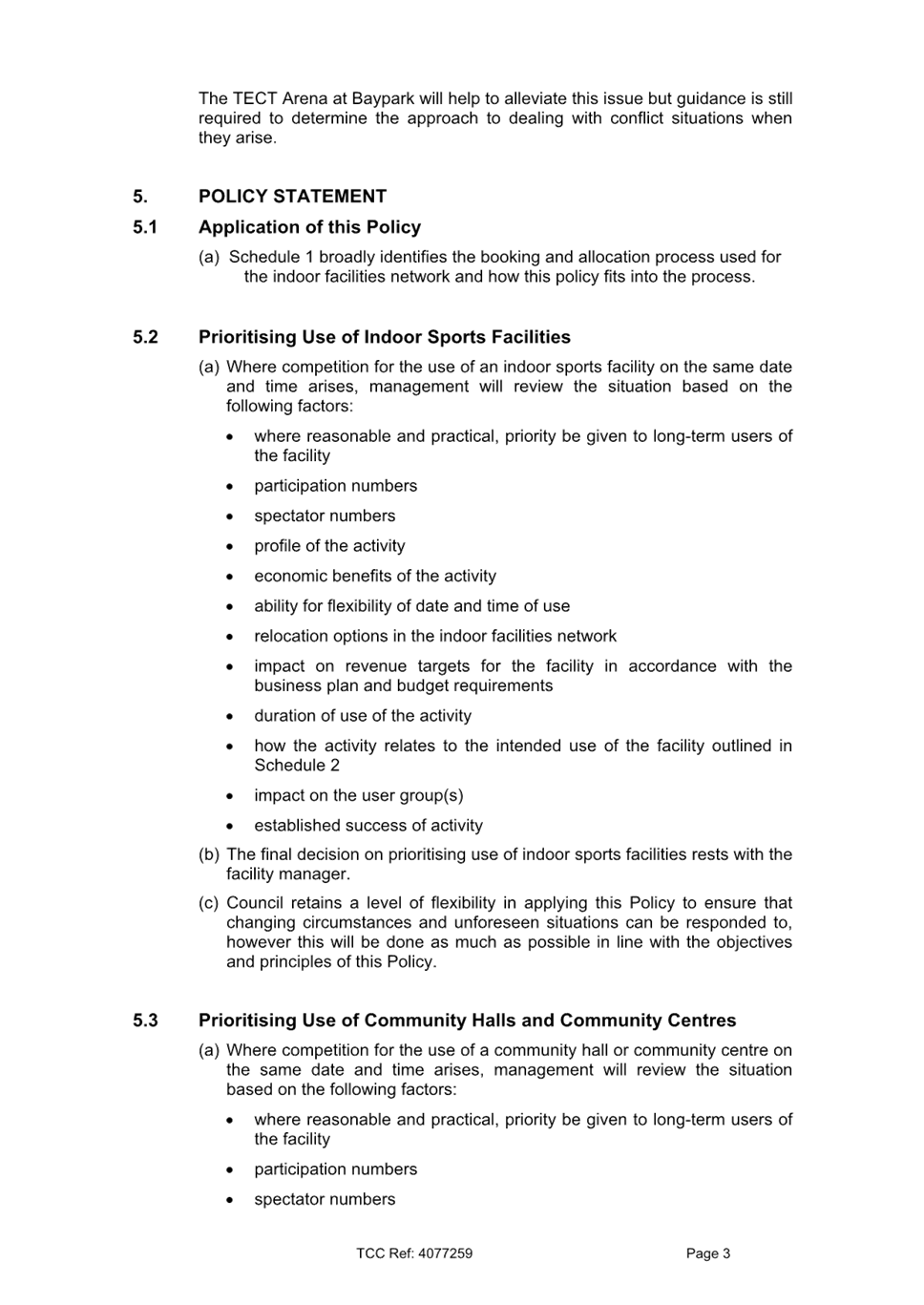 [10] This procedure currently sits under the lead Prioritising Use of Indoor Facilities Policy. Both procedures are currently under review to assess their effectiveness and ensure they remain fit for purpose in supporting strategic and operational outcomes.