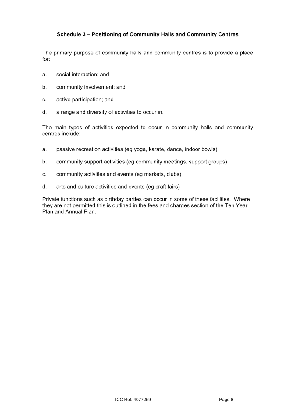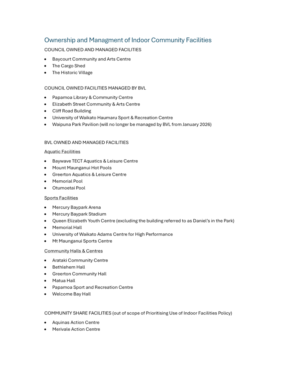 [8] A Council Controlled Organisation (CCO) wholly owned by Tauranga City Council. See Attachment 2 for a list of all the indoor community facilities and who owns and manages them.