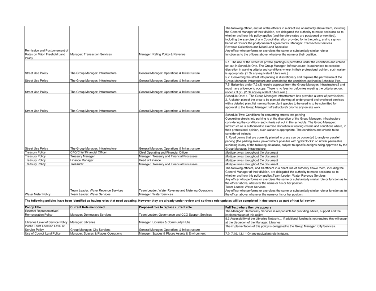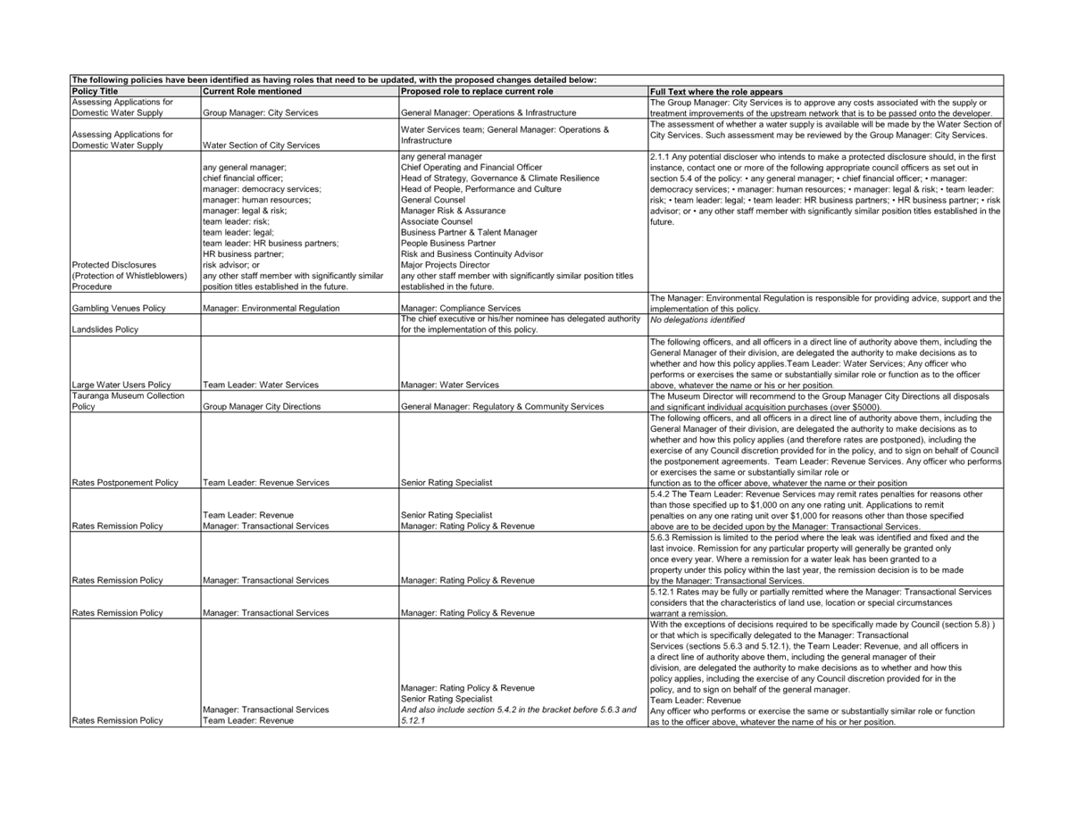 Update the relevant policy delegations as proposed in the attached table Recommended |