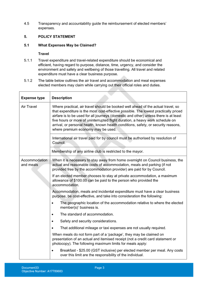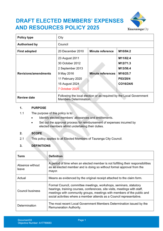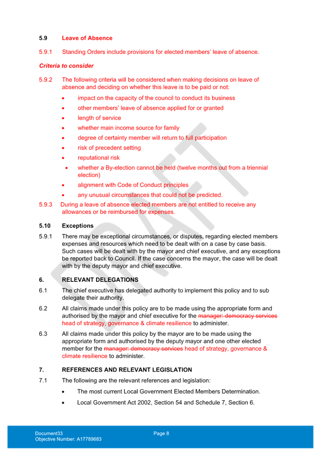 11.4 Elected Members' Expenses and Resources Policy - proposed leave of absence section