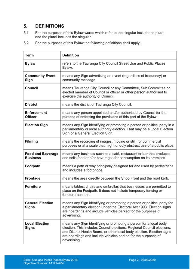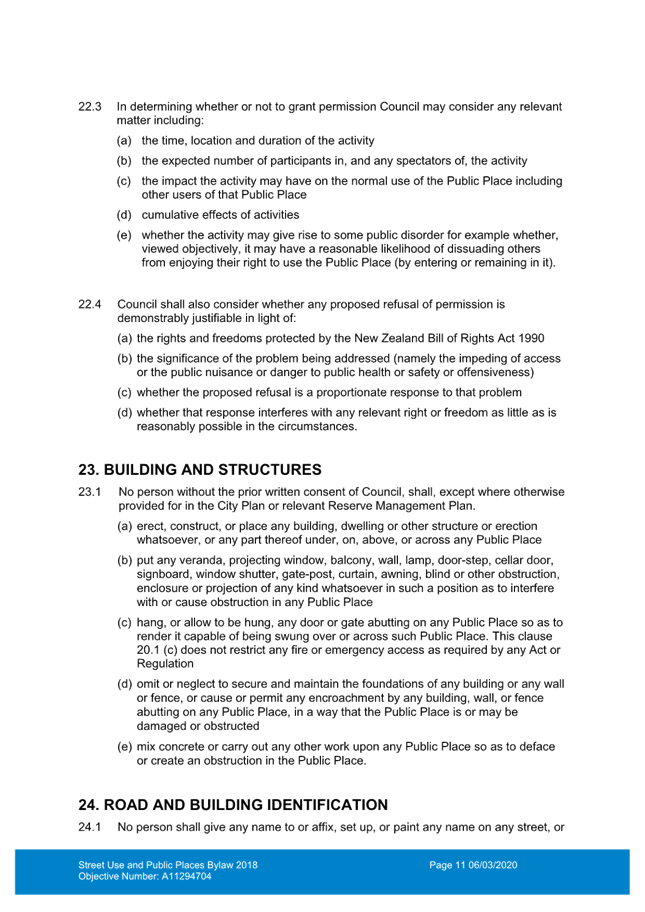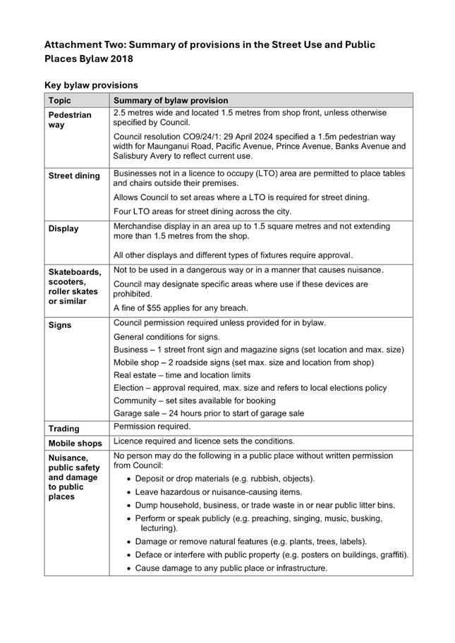 of provisions in the Street Use and Public Places Bylaw - A18878570 ⇩ ![]()