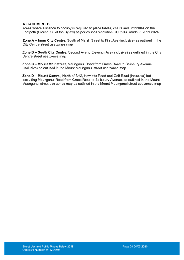 [4] The Council resolution made on 29 April 2024 specified a 1.5m pedestrian way width for Maunganui Road, Pacific Avenue, Prince Avenue, Banks Avenue and Salisbury Avery to reflect current use.