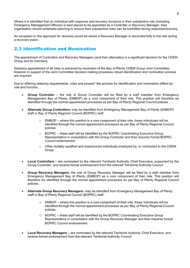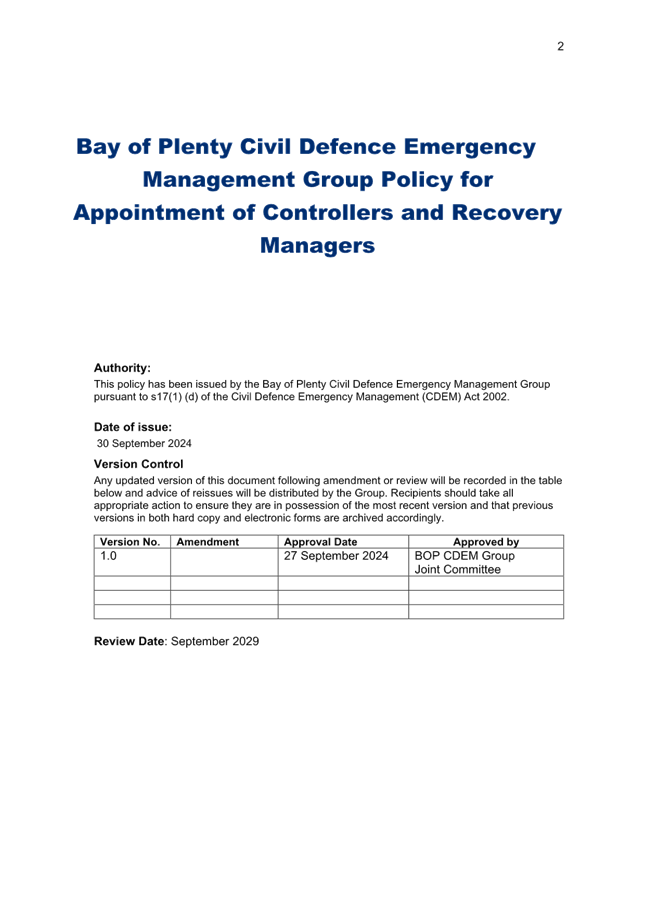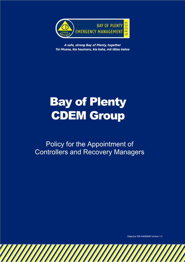 of Plenty CDEM Group - Policy for Recovery Managers and Controllers -