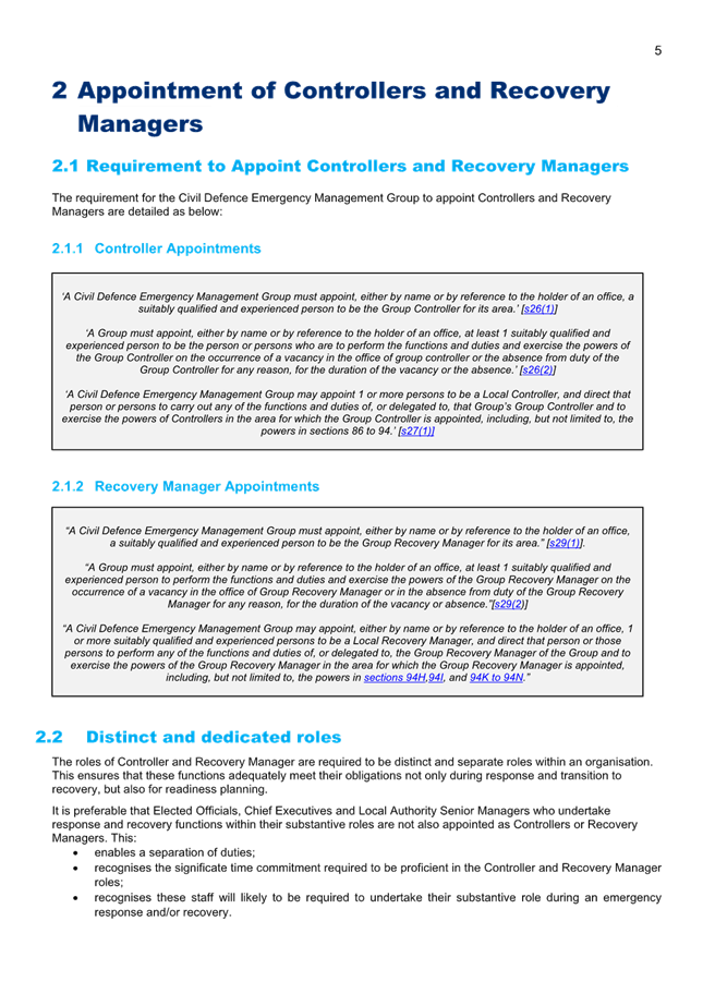 10. Appointment of Controllers & Recovery Managers is outlined within the Civil Defence Emergency Management Act 2002.