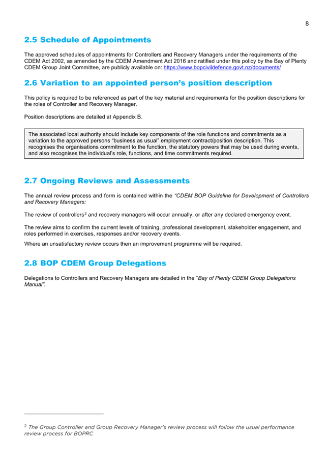 2. Tauranga City Council are required to appoint Local Controllers and Local Recovery Managers by the Civil Defence Emergency Management Act 2002 and the CDEM Amendment Act 2016.