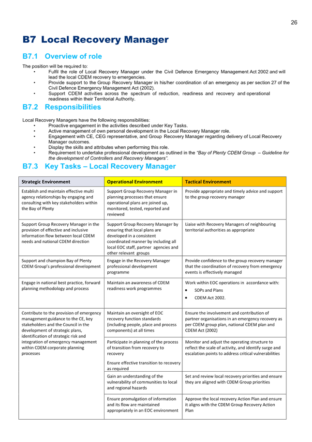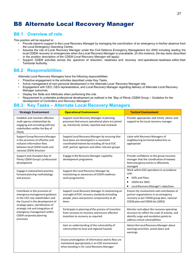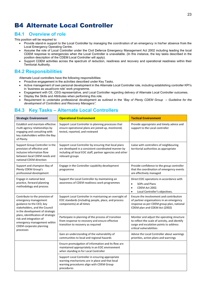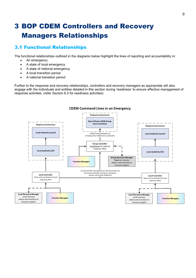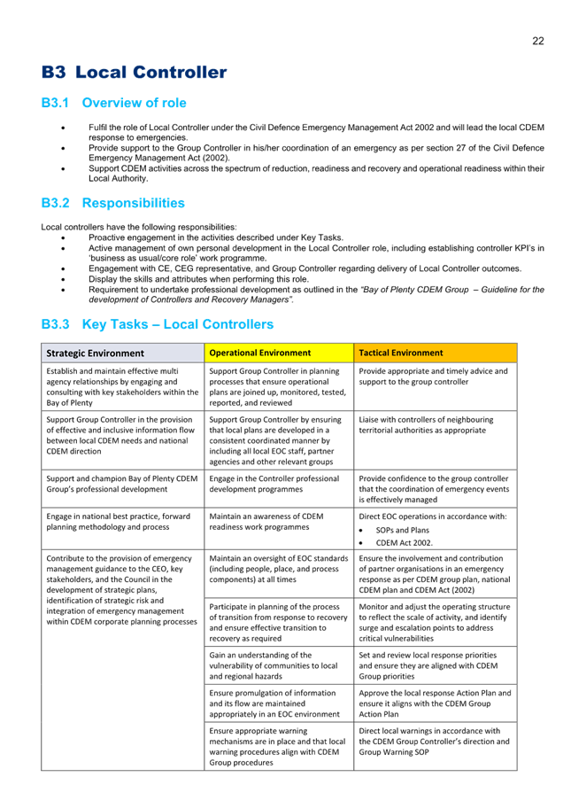 4. The specific functions and powers of Local Controllers and Local Recovery Managers are delegated via the Bay of Plenty CDEM Group Joint Committee through the 5-yearly Bay of Plenty CDEM Group Plan.