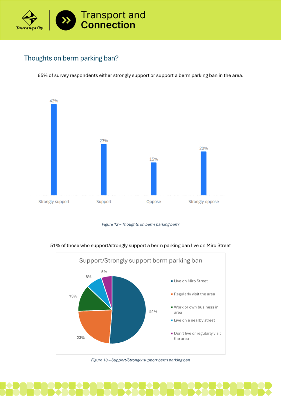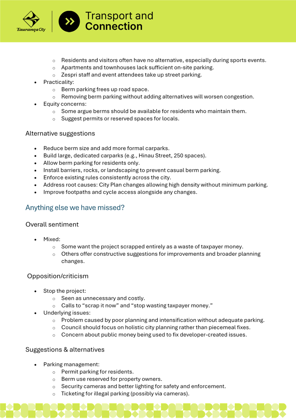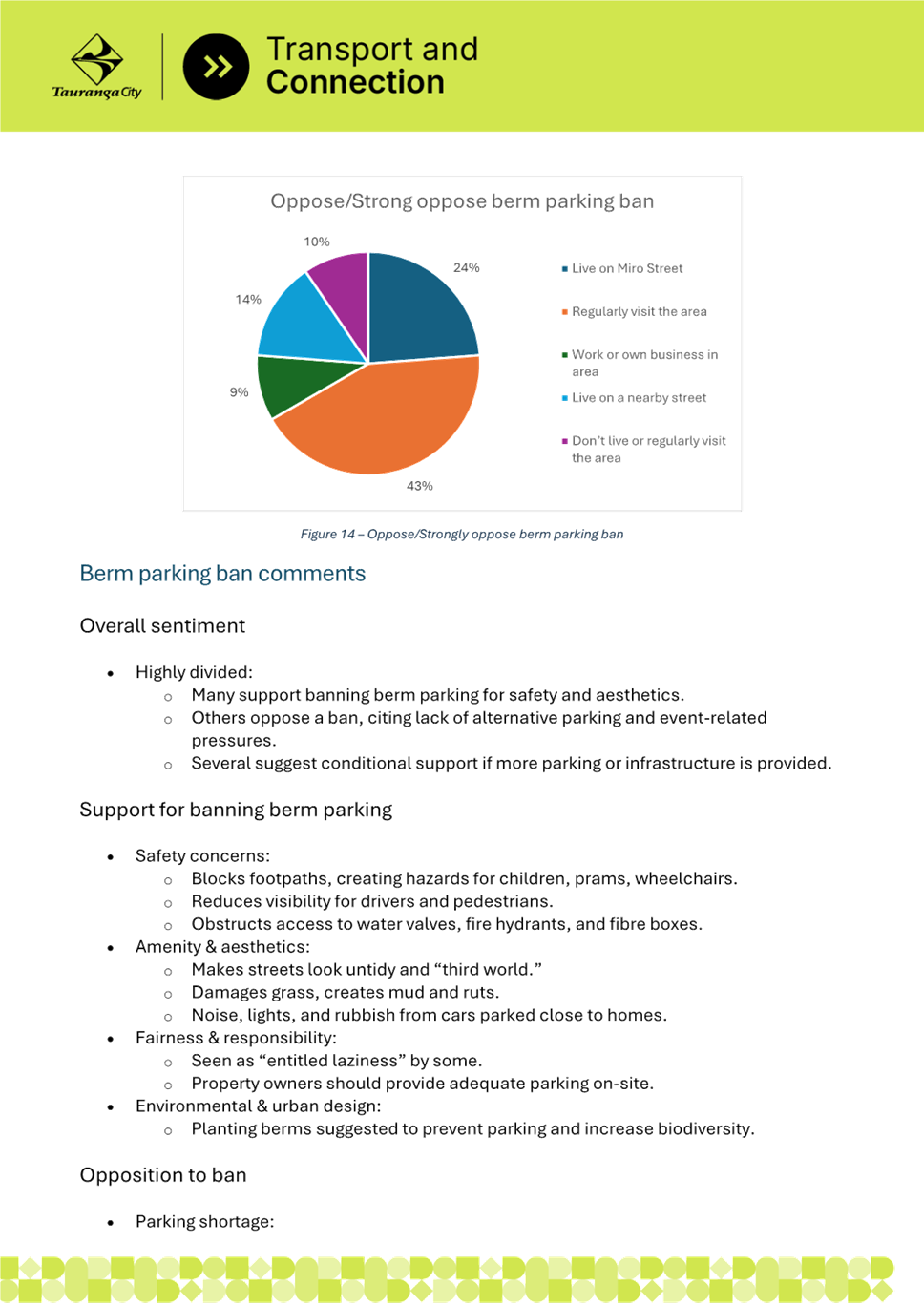 3. This has resulted in frequent berm parking, reduced pedestrian safety and poor connectivity as well as damage to berms and visibility issues at property access points.