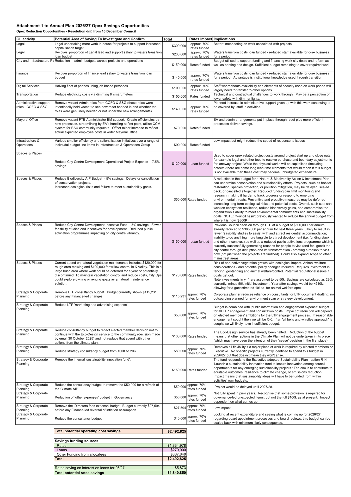 3. Confidential -LoS savings opportunities tables (with extra column) for elected members - A19729782 - Public Excluded (Separate Attachments 1)