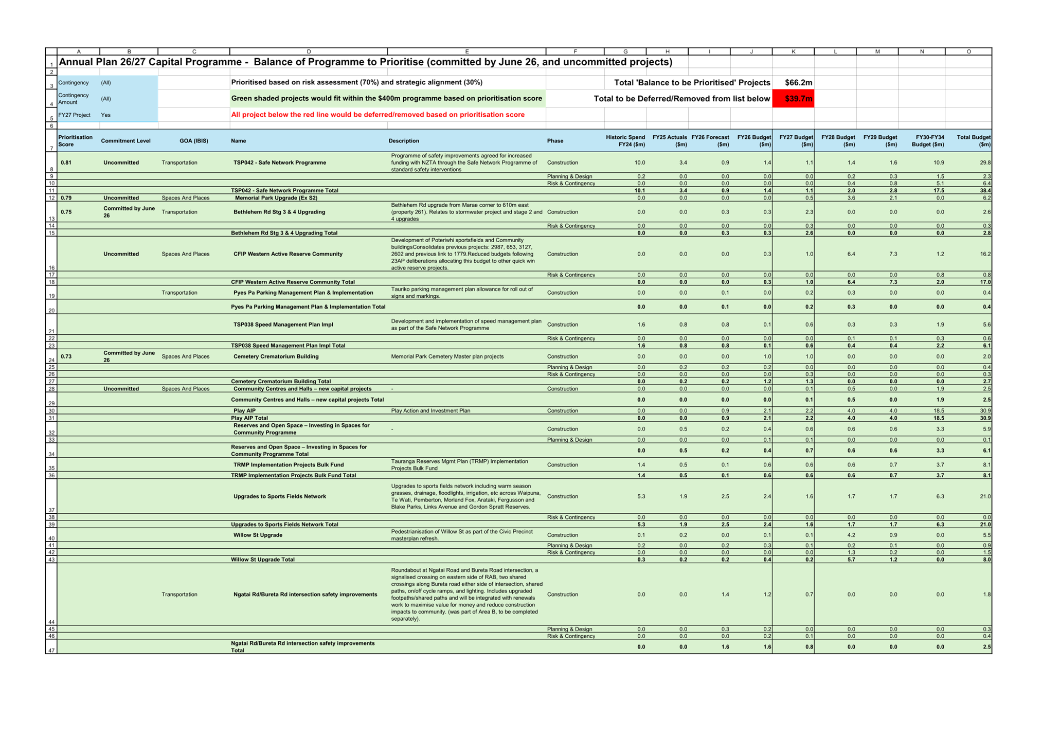 72. Assumptions in the corporate planning system were based on data in November 2025. As the 2025/26 year progresses capital cost and delivery and expenditure and revenue impacts will affect the opening position for the budget. Events such as the recent impacts at Mauao and resultant business impacts and expenditure requirements will also influence the final budget.