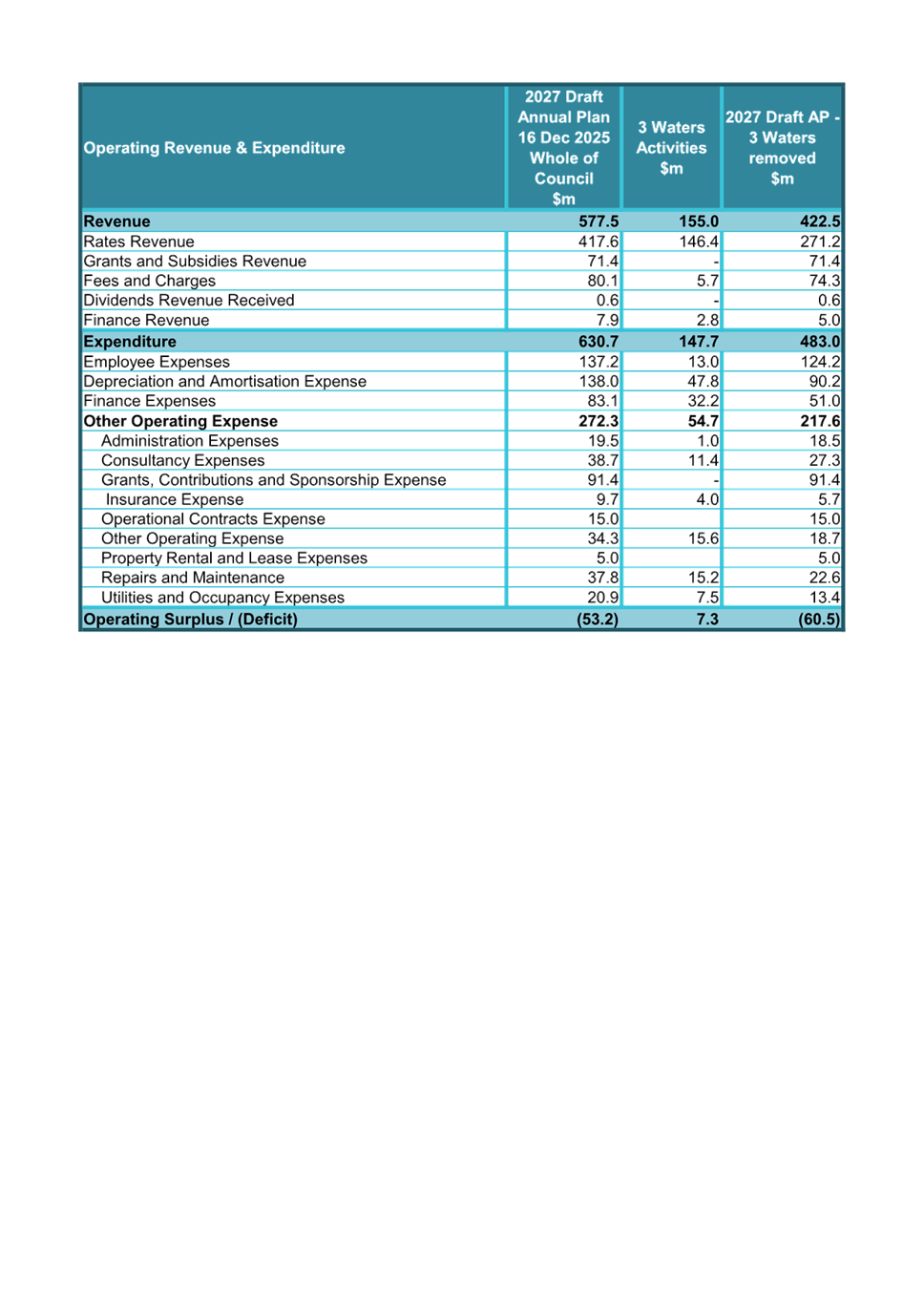 Revenue and Expense including 3 Waters out - A19729982 ⇩